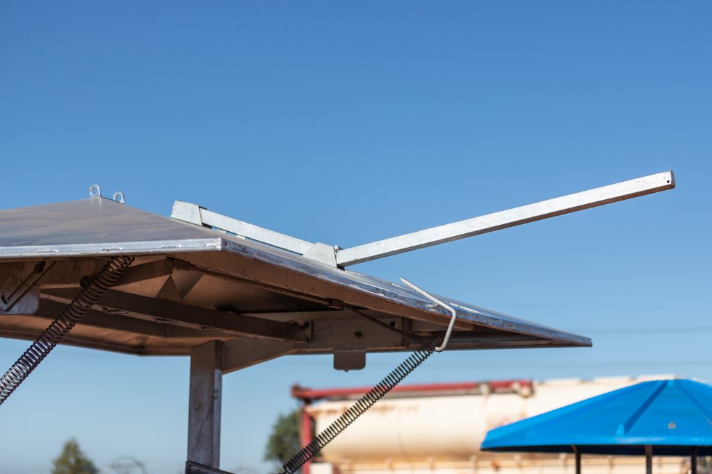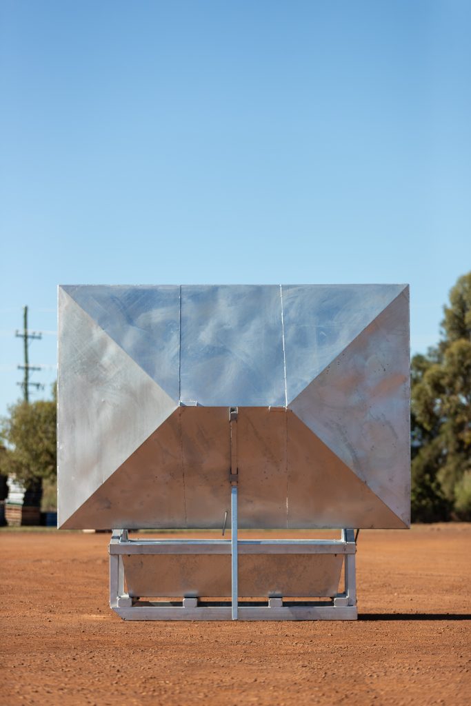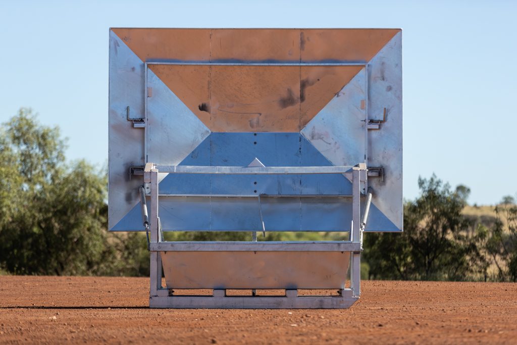 The Top Tonna is a large, durable, hot dipped galvanised steel covered feeder with the capability of holding one tonne of feed in the bin. This allows for farmers to distribute approximately a one-month supply of Top Country supplement for 100 head of stock at a time. With a large roof to cover the bin, this strong and sturdy steel bin is protected from the elements and potential damage from your stock. The lid is able to be tilted for easy access, and the bin also features a built-in, easy-pour spike for bulka bags. The Top Tonna can easily be moved with a forklift from any of the four sides.